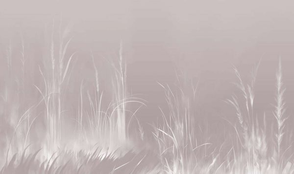 Le sfumature bluastre nebbiose in questo design danno vita al delicato movimento delle erbe ondeggianti. Le morbide transizioni tra blu, grigio e bianco sottile creano un'atmosfera equilibrata e calma, accentuata dalla tecnica dell'acquerello leggera.