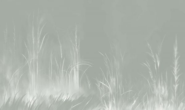 Graminacee ondeggianti in profonde tonalità di grigio creano un'atmosfera moderna e sobria. Gli effetti acquerello e le sottili pennellate conferiscono un aspetto elegante e senza tempo, ideale per un interno di classe.