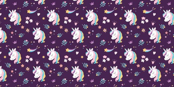 Un unicorno con criniere colorate su uno sfondo viola. L'unicorno sembra amichevole.