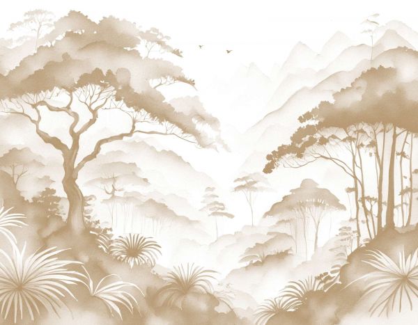 Carta da parati - Valle di Montagna Nebbiosa, taupe