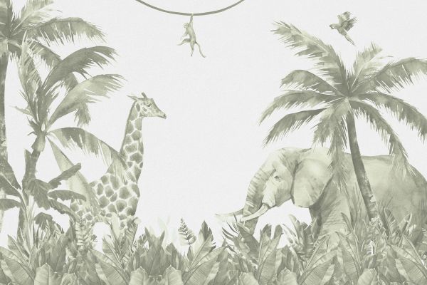 Una bella immagine della giungla con simpatici animali di colore verde.