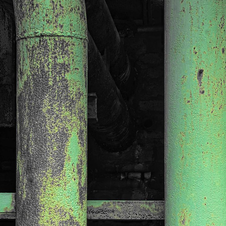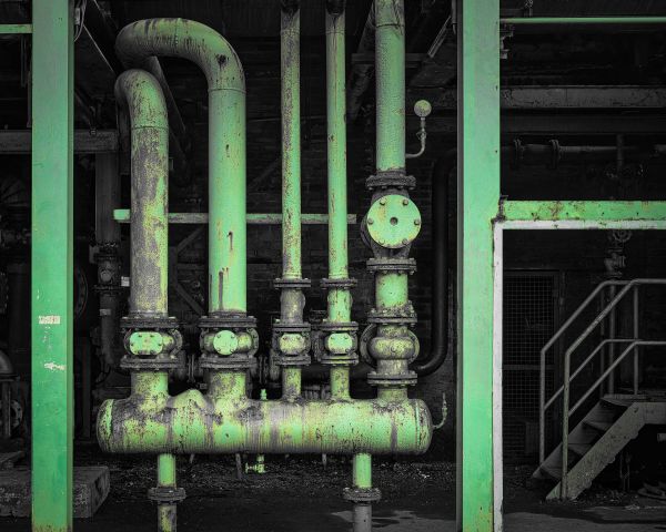 Una vecchia struttura tubolare in un'area industriale abbandonata.