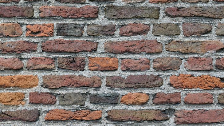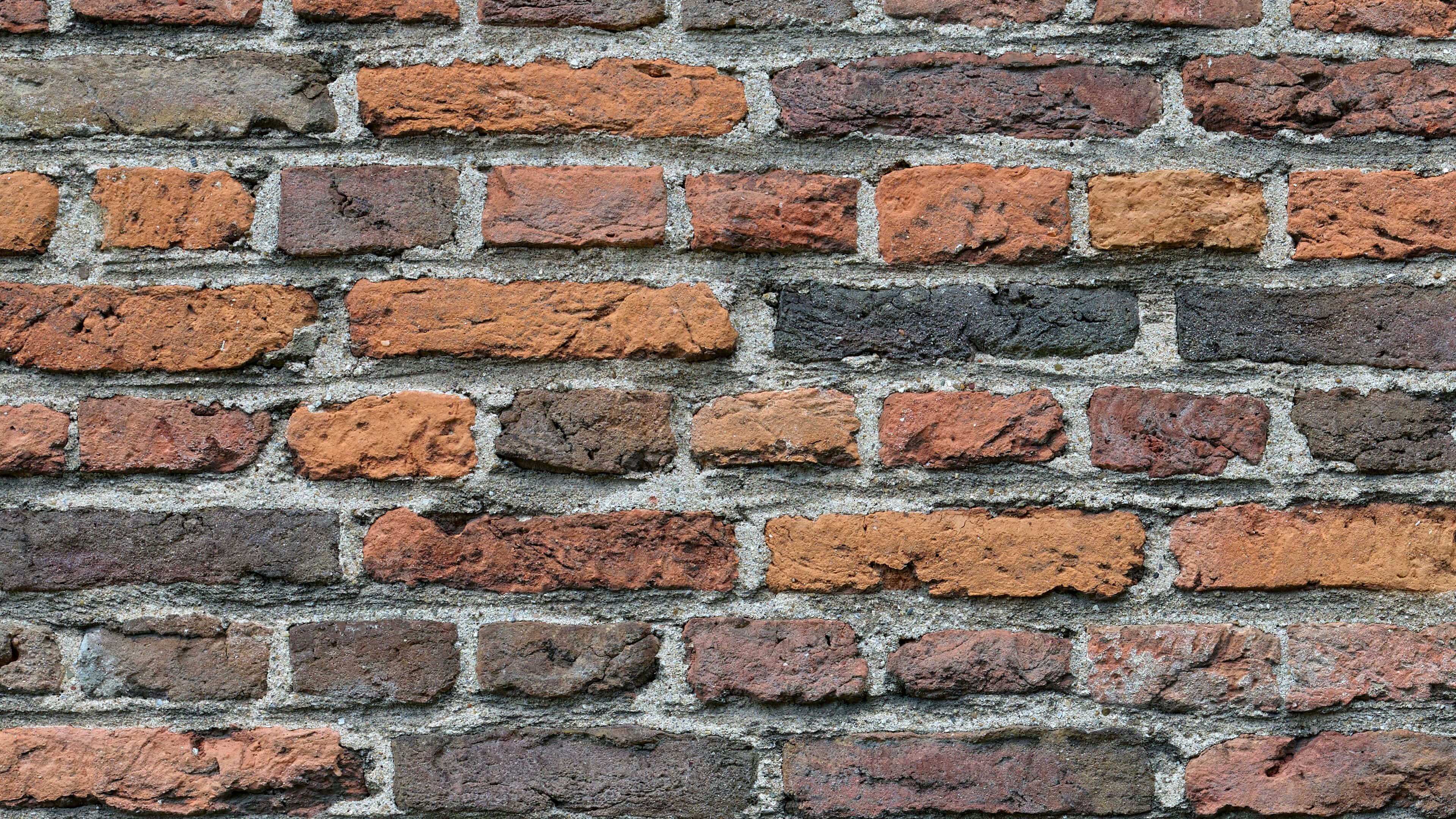 Muro restaurato fatto di vecchi mattoni colorati. Con questa carta da parati fotografica nella stanza, è come se il tuo muro fosse fatto di pietra.
