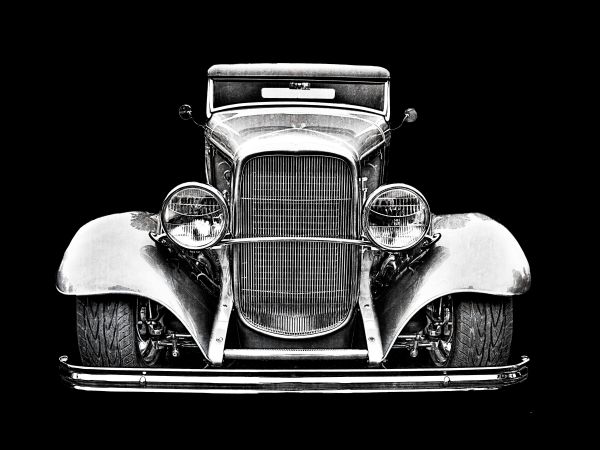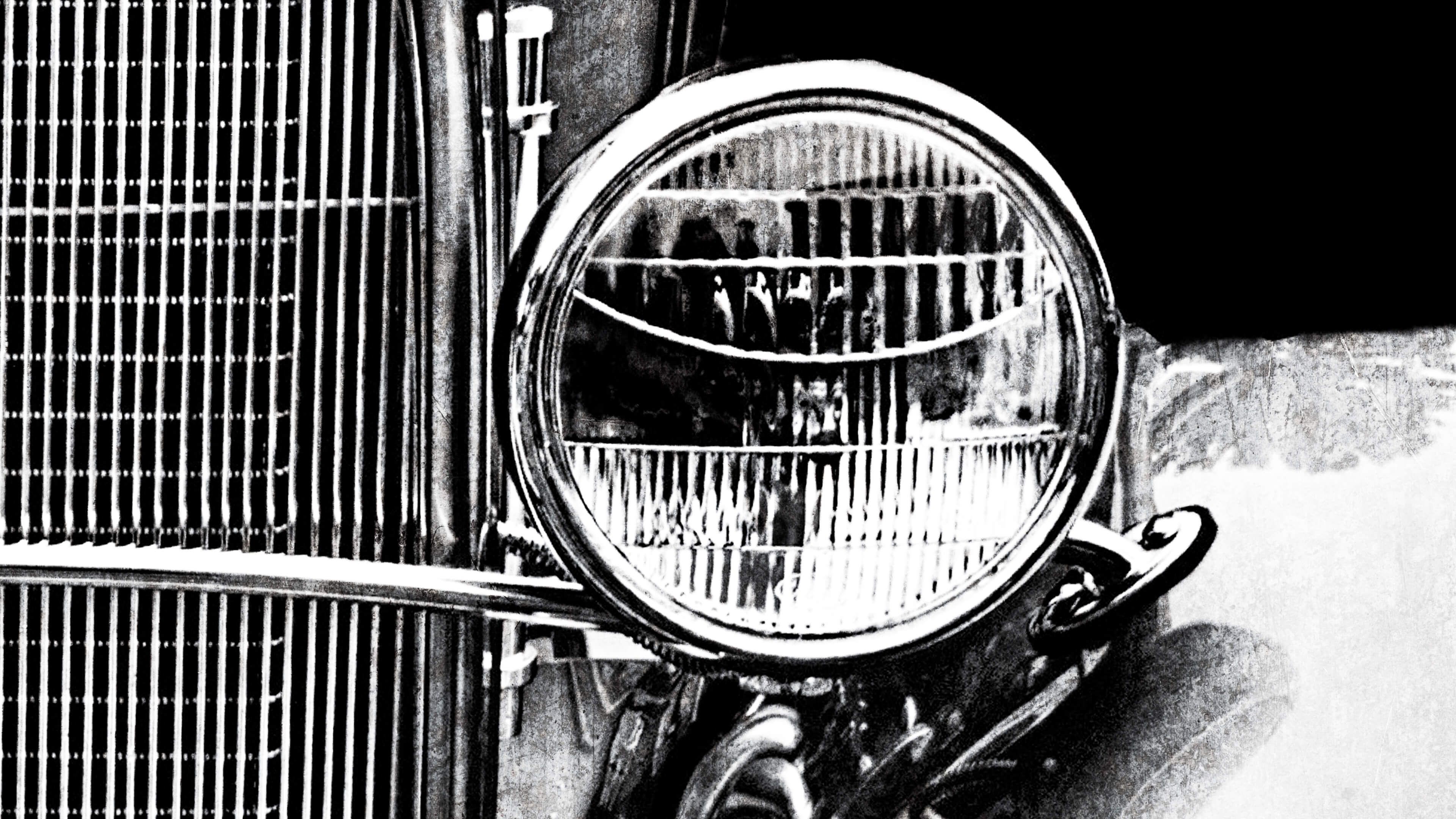 Oldtimer in bianco e nero. Poiché l'immagine è in bianco e nero, si può facilmente combinare questa carta da parati in quasi tutte le stanze.
