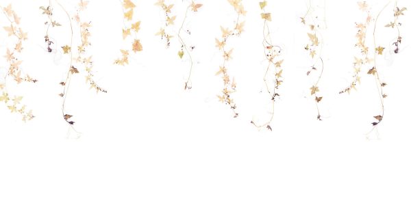 Carta da parati botanica con vite di siepe su sfondo chiaro. I viticci pendono dall'alto verso il basso.
