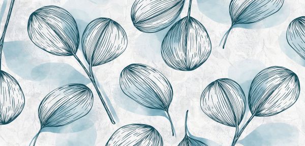 Un motivo di foglie blu su una struttura in cemento chiaro.