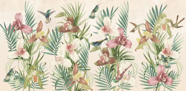 Diseños elegantes con flores exuberantes, colibríes y hojas elegantes, enriquecidos con combinaciones de colores suaves. Estos patrones aportan una belleza natural refinada y relajante a cualquier habitación.
