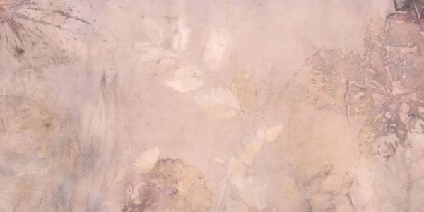 Un mondo onirico poetico e naturale di foglie in morbidi toni di rosa e malva.