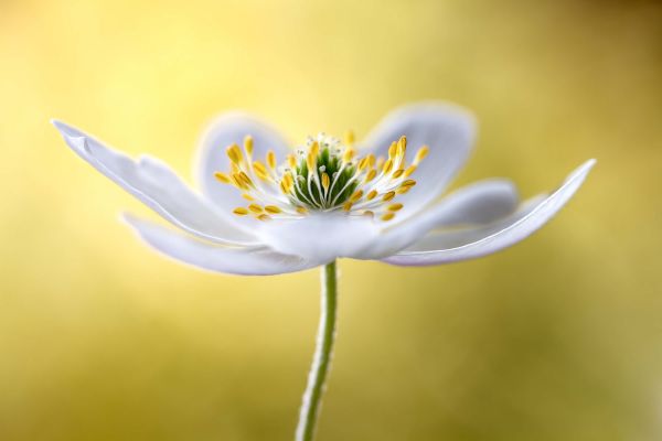 Anemone di legno bianco su sfondo giallo. Combinate questa carta da parati con foto nella vostra casa per un'atmosfera ancora maggiore.